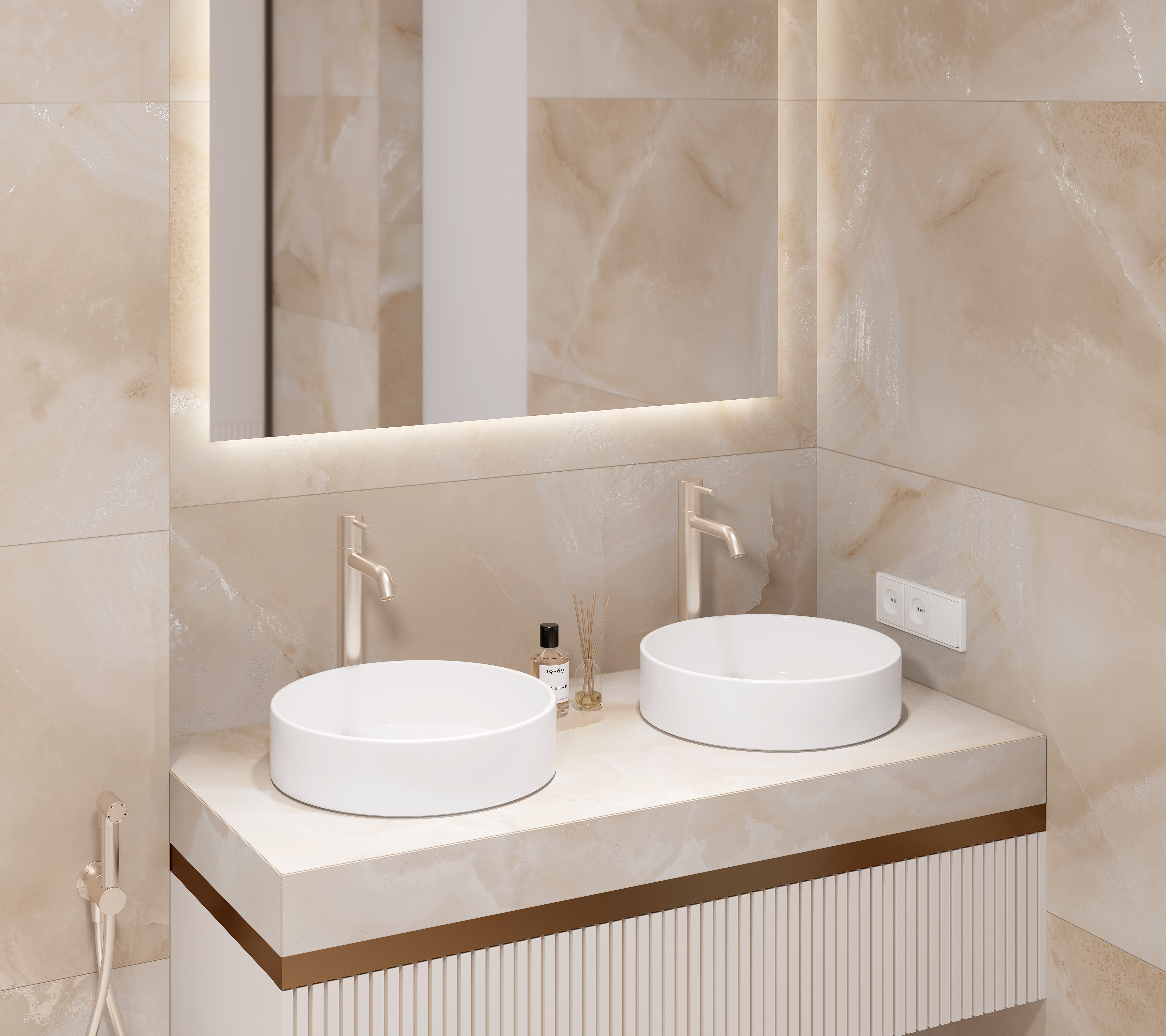 Каммео Оро Керамогранит бежевый LP6012G0521R 59,5х119,1 матовый+гл.чернила