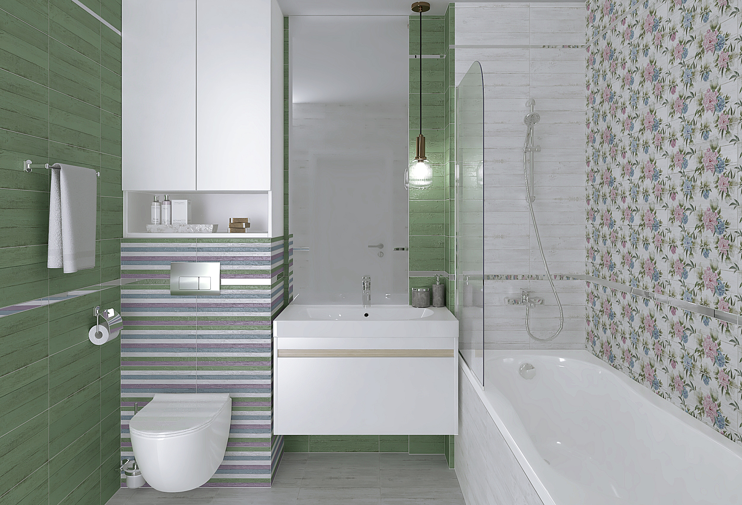 Land Плитка настенная полоски зелёный 08-00-85-2671 20х40
