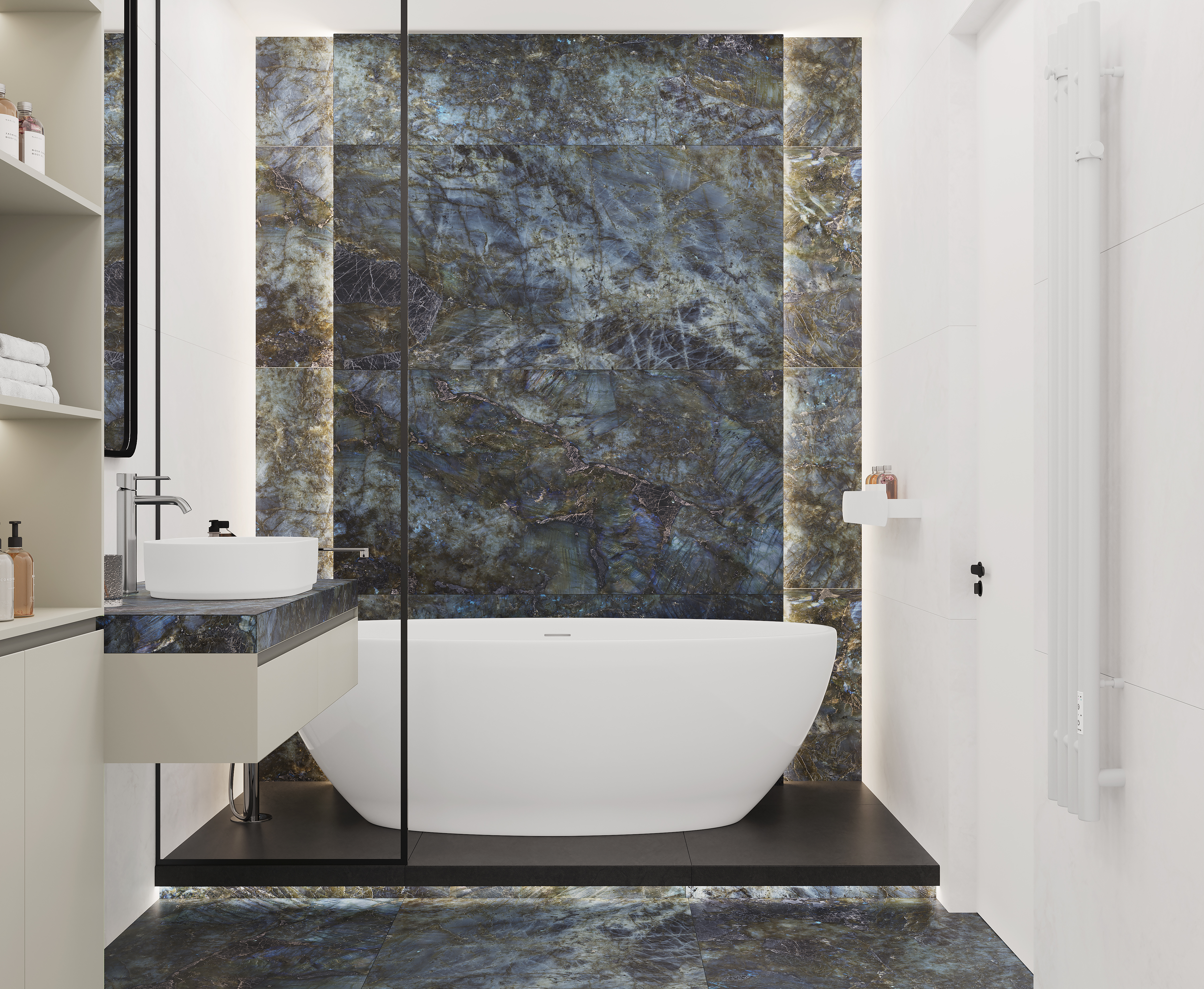 Ригел Азул Керамогранит синий 80х160 матовый+гл.чернила