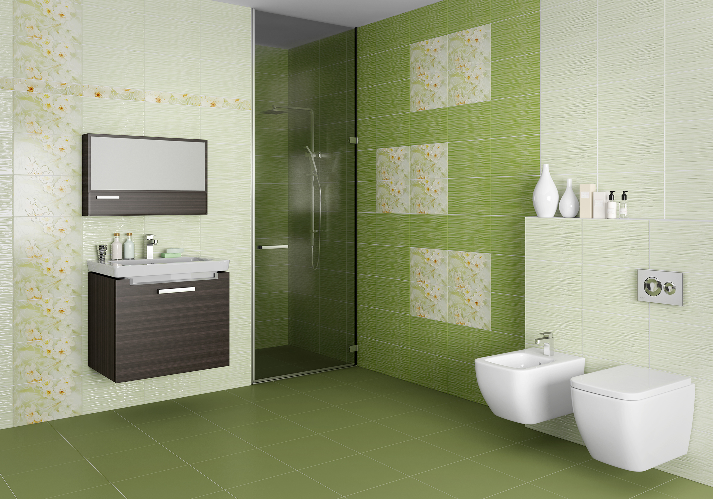 Сакура Плитка настенная зеленая 02 25х40